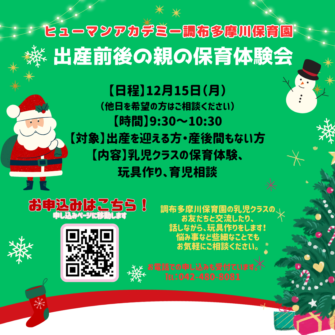 ヒューマンアカデミー調布多摩川保育園に直接お越しいただくか、オンラインでの園見学も実施しております。