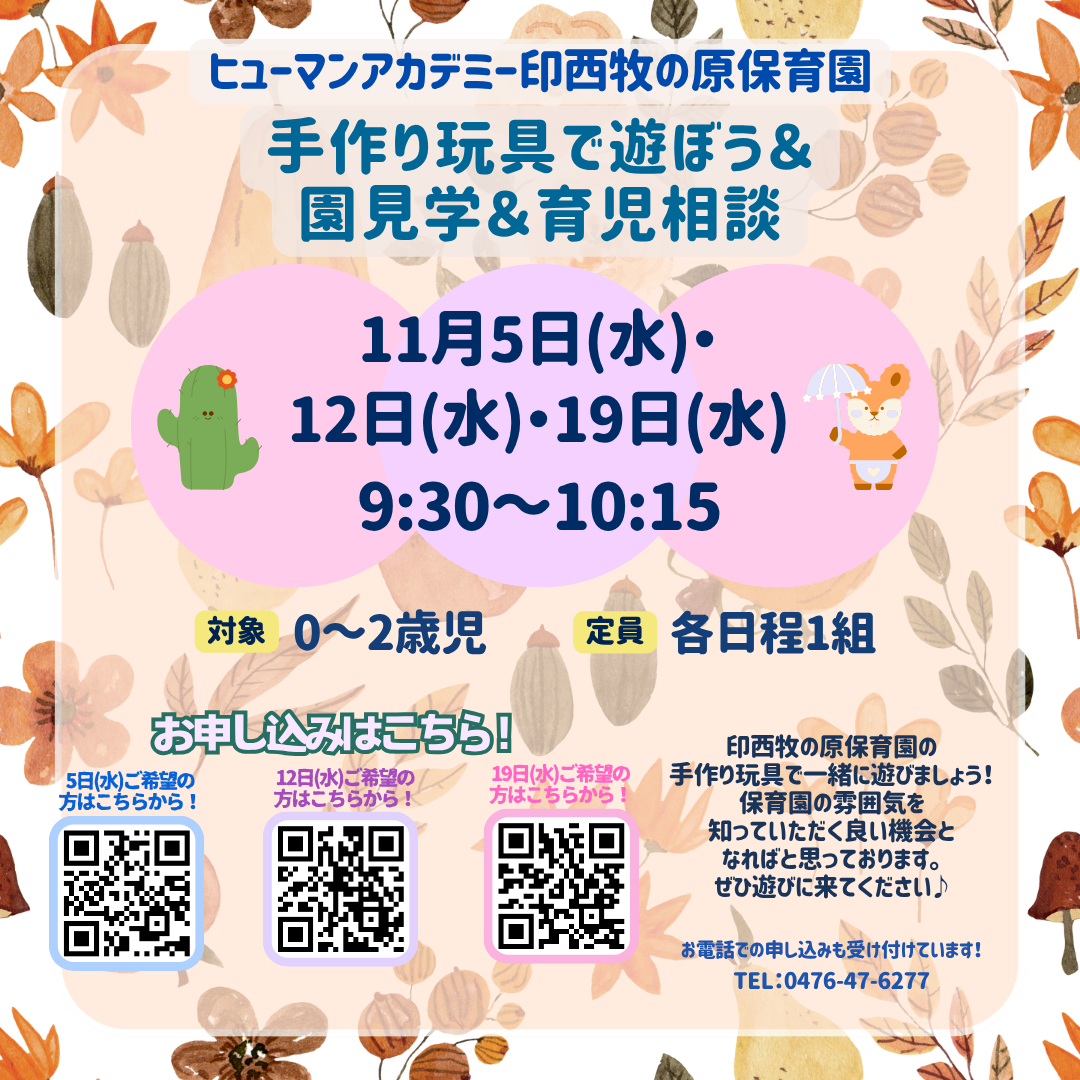 ヒューマンアカデミー印西牧の原保育園より手作り玩具に触れてみよう&園見学(0・1・2歳児対象)