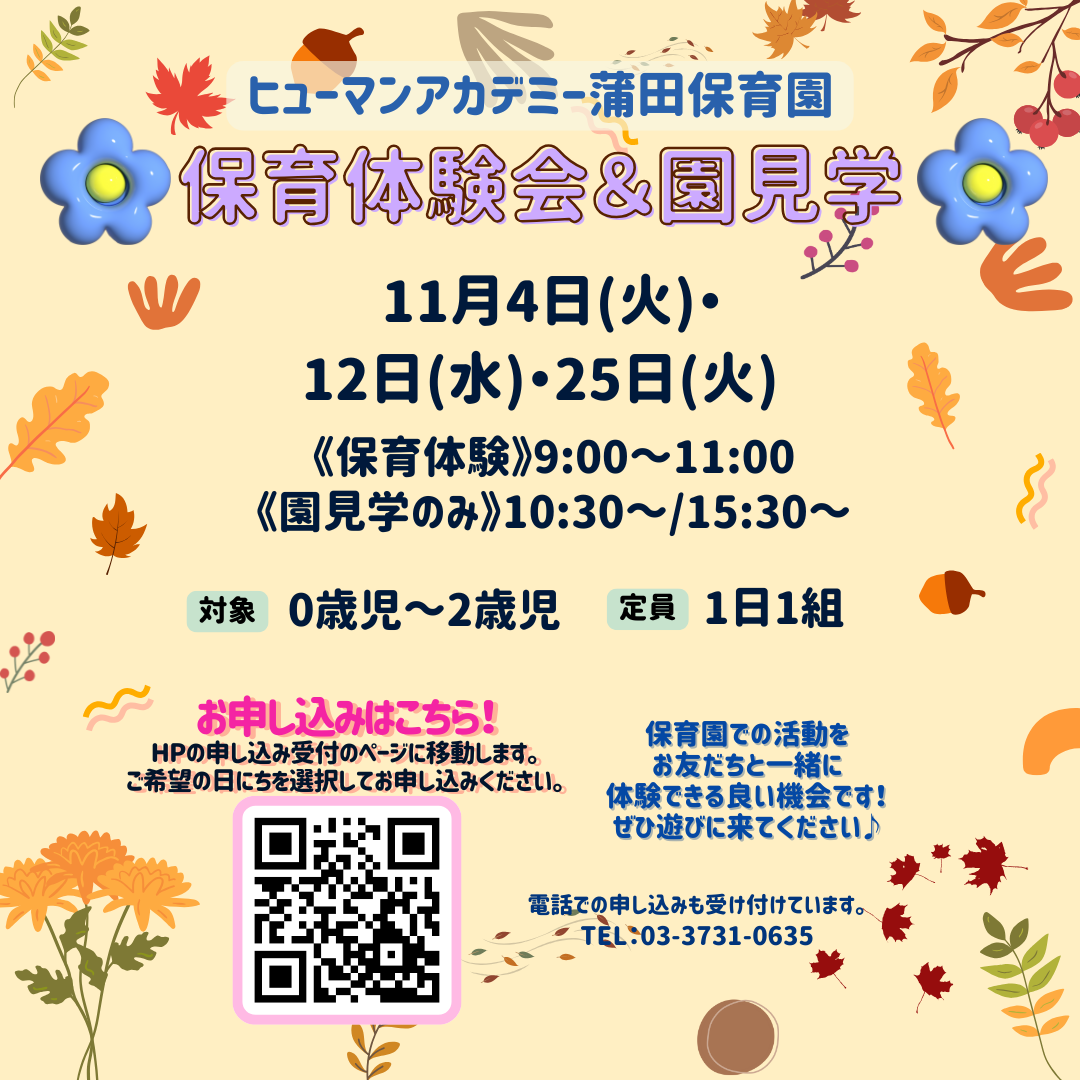 保育体験会と園見学のお知らせです。