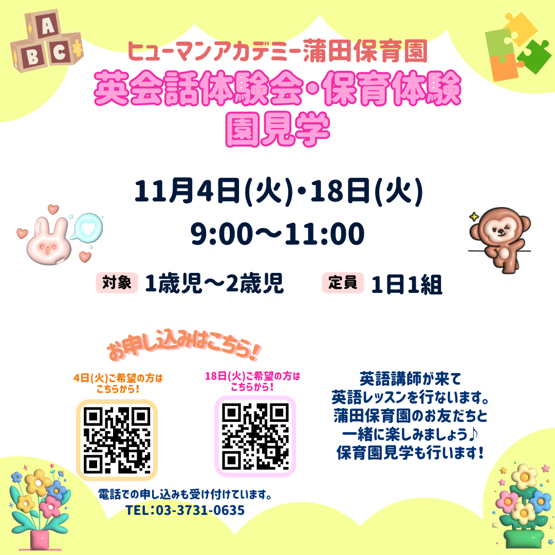 ヒューマンアカデミー蒲田保育園より英会話体験・保育体験&園見学