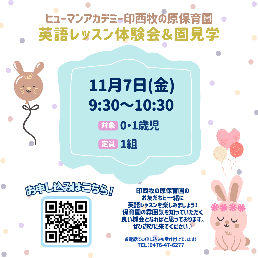 英語レッスン体験会&園見学・育児相談会のお知らせです。