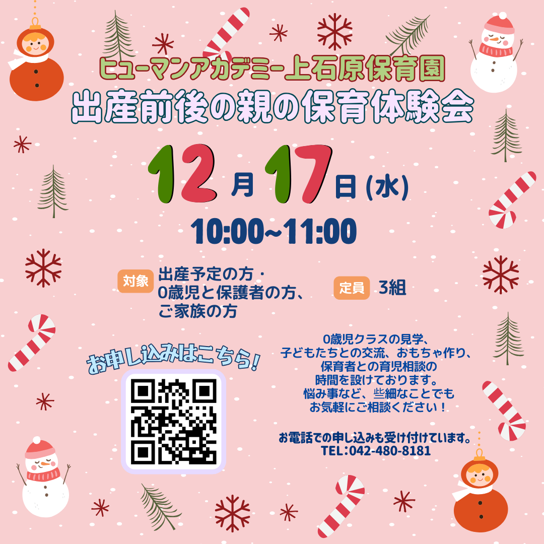 クリスマス飾り作り・保育体験・園見学・育児相談など内容盛りだくさんです。