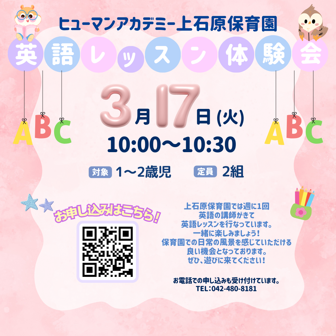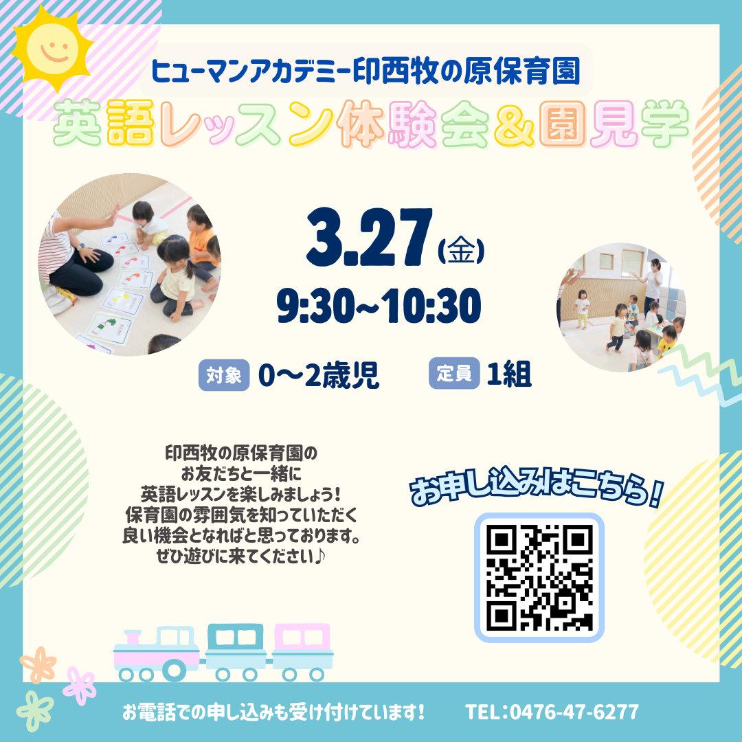 英語レッスン体験会&園見学&育児相談会のお知らせです。