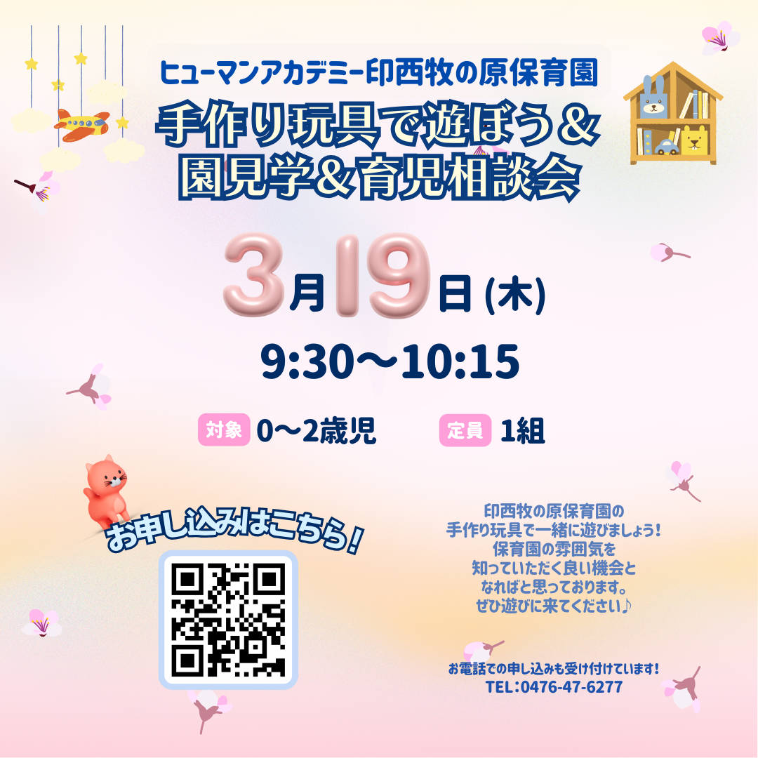 ヒューマンアカデミー印西牧の原保育園より手作り玩具で遊ぼう&園見学(0・1歳児対象)