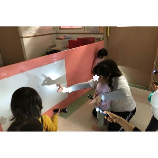 光を照らした先に影が出てくると「大きい!」「すごい!」など大喜び!