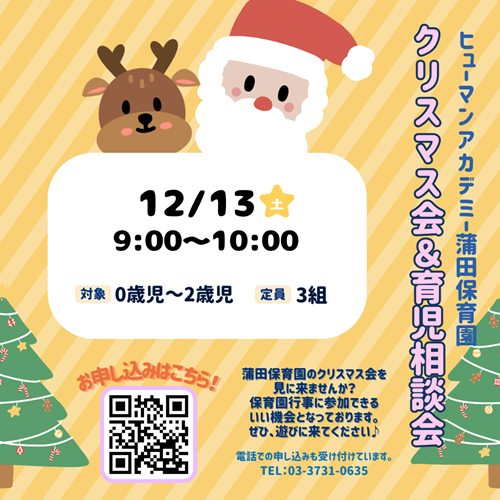 ヒューマンアカデミー蒲田保育園より、クリスマス会&育児相談・・・