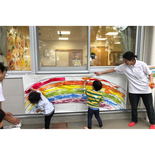テラスでのボディーペインティングをしました。 子どもたちも・・・